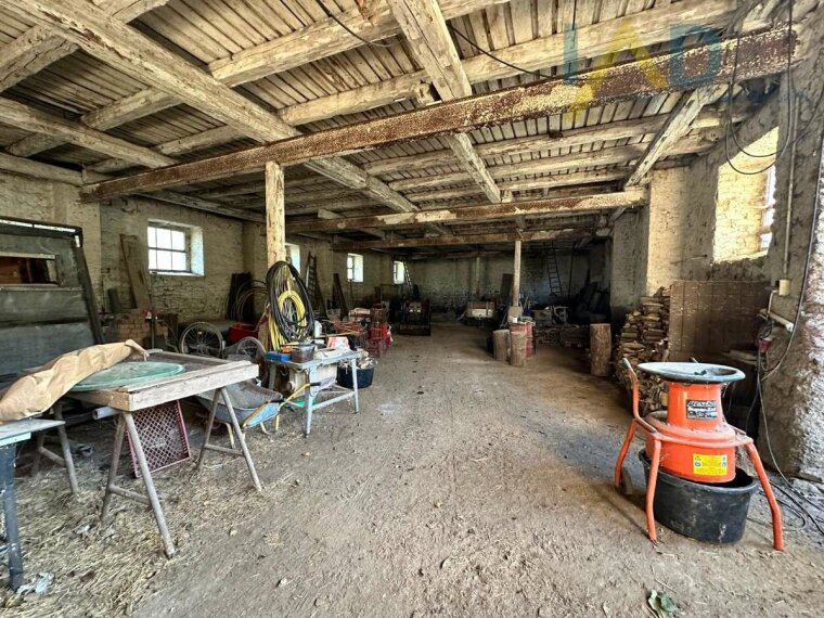 Herzstück des Hofes ist das charmante Wohnhaus, ergänzt durch mehrere Nebengebäude, darunter eine eindrucksvolle Scheune mit historischem Wappen – ein Einzeldenkmal mit großem Potenzial für kulturelle oder gewerbliche Nutzung. Ein weiteres Nebengebäude dient derzeit als Lager, ehemaliger Hühnerstall sowie Technikraum für den Poolbereich – auch ideal als Werkstatt oder Tierunterkunft.