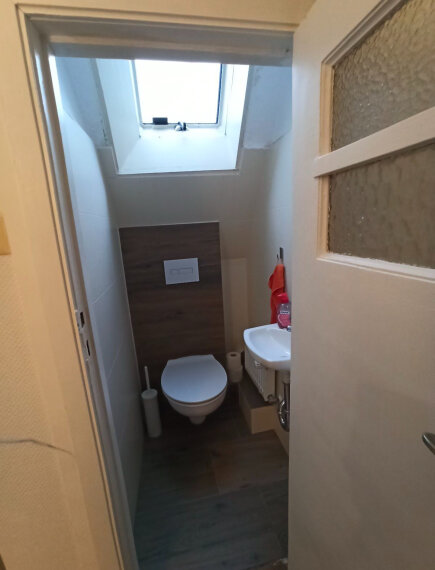 Zwei moderne Badezimmer – eines mit Badewanne, WC und Waschbecken, 2015 erneuert. Das zweite Bad ist ein praktisches Gäste-WC mit Waschbecken, ebenfalls 2015 saniert.