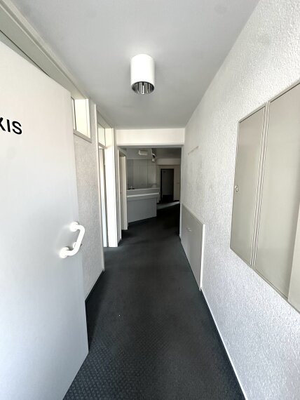 Hier befindet sich eine Praxis mit modernem und funktionalem Layout. Die Fläche im 1. OG ist ideal für medizinische, therapeutische oder beratende Dienstleistungen und bietet ebenfalls einen Teil der 370 m² Nutzfläche des Gebäudes.
