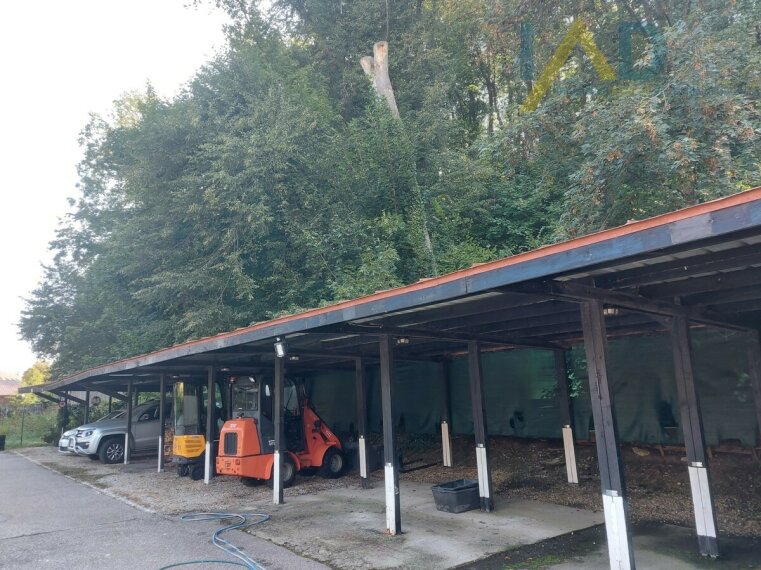 Die Immobilie überzeugt zudem mit einer gut ausgestatteten Werkstatt, die mit einer Hebebühne ausgestattet ist und sich perfekt für handwerkliche Tätigkeiten oder als großzügige Garagenfläche eignet. Mit insgesamt 16 Carports steht ausreichend Platz für Ihre Fahrzeuge und die Ihrer Kunden zur Verfügung.