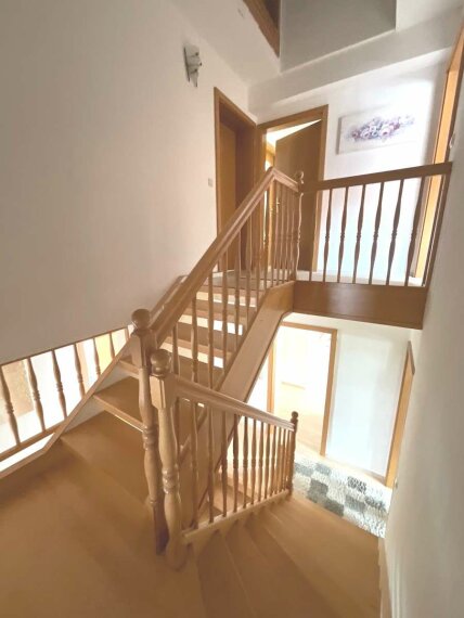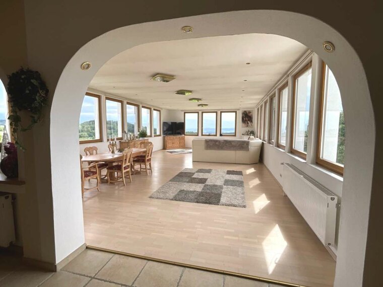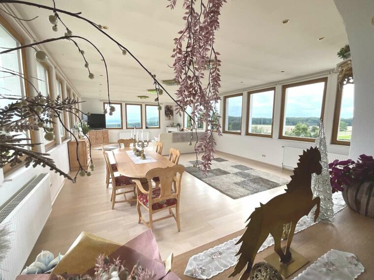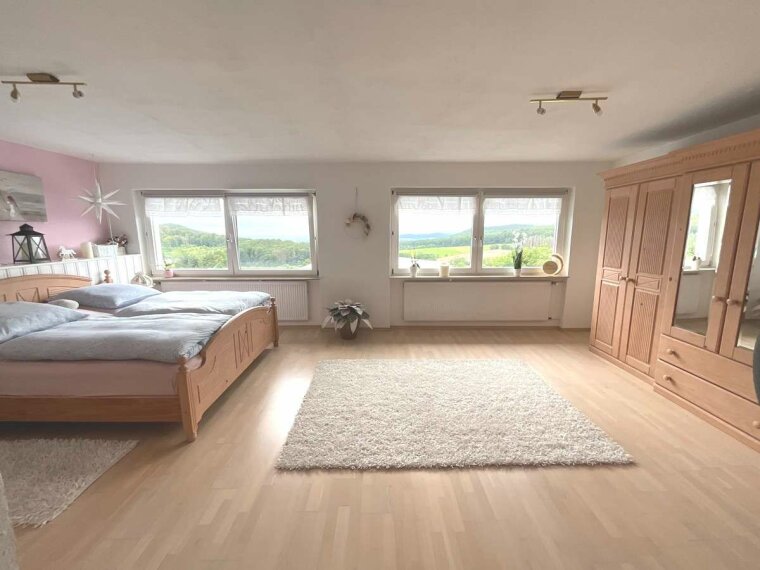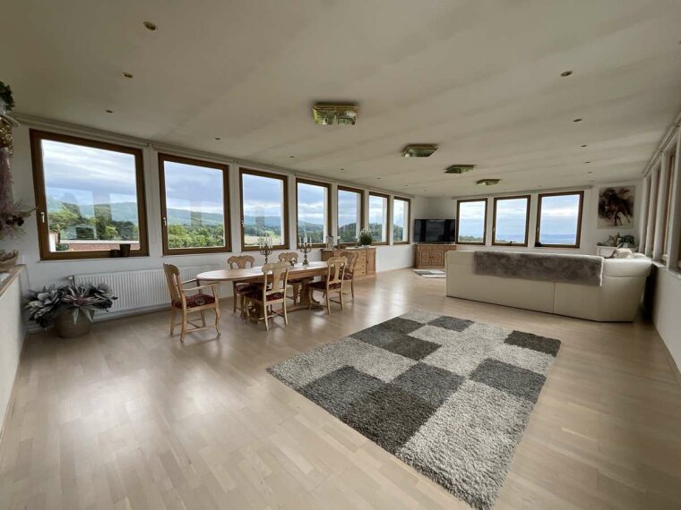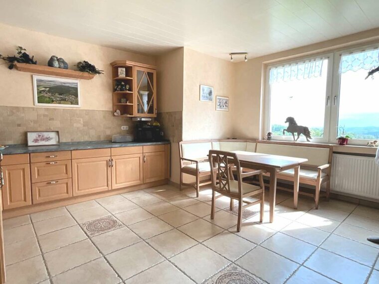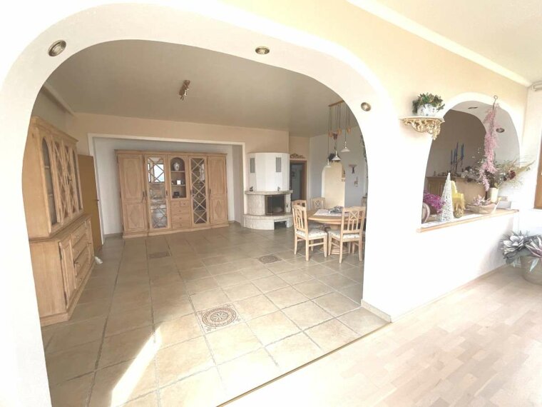 Das Haus ist mit einer modernen Pellet-Zentralheizung ausgestattet, die für ein angenehmes und energieeffizientes Wohnklima sorgt. Der geräumige Wohnbereich umfasst ein großzügiges Wohnzimmer mit einem spektakulären, ungestörten Weitblick. Ein einladender Kamin sorgt für eine gemütliche Atmosphäre und lädt zu behaglichen Abenden ein. Das Haus ist vollständig unterkellert und bietet somit zusätzlichen Stauraum sowie vielfältige Nutzungsmöglichkeiten.