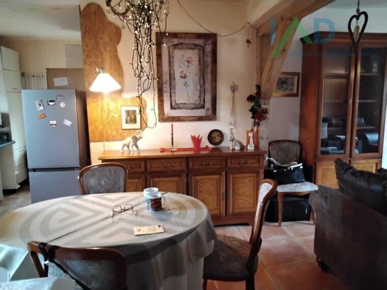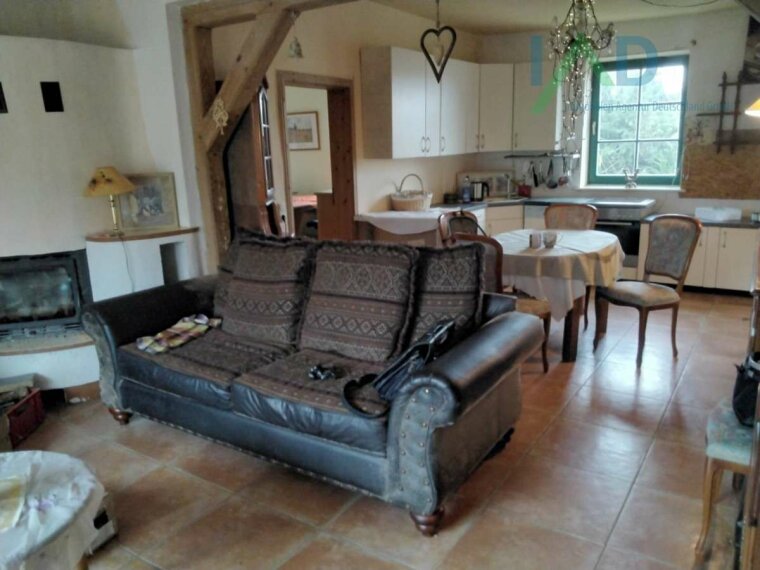 Das Fachwerkhaus verfügt über ca. 100m² Wohnfläche im Erdgeschoß und ca. 75m² Ausbaureserve im Dachgeschoß.