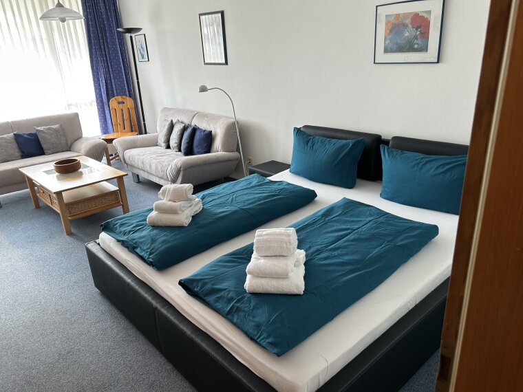 Helles Wohn-/Schlafzimmer mit funktionaler Raumaufteilung