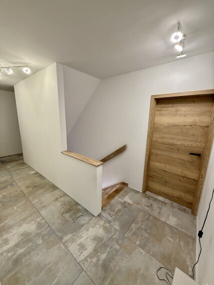 Im Obergeschoss erwarten Sie drei geräumige Schlafzimmer, darunter ein stilvolles Ankleidezimmer, sowie ein modernes Badezimmer. Zwei Balkone laden dazu ein, die herrlichen Ausblicke auf die umliegende Natur zu genießen. Der ausgebaute Dachboden bietet Ihnen die Möglichkeit, diesen nach Ihren Wünschen als zusätzlichen Raum zu gestalten.