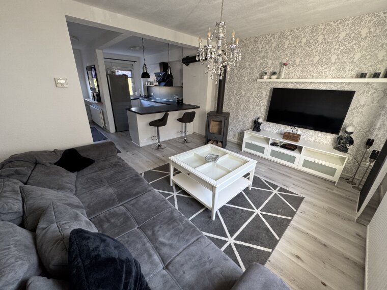 • Wohnküche mit Kamin und eine moderne Einbauküche (2021) mit Wasserfilter