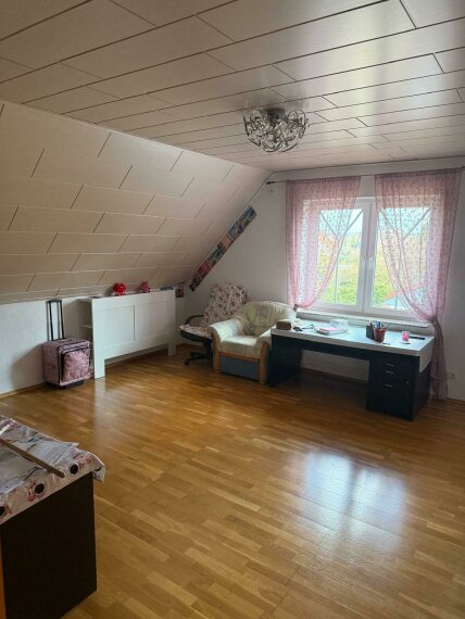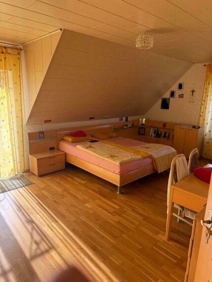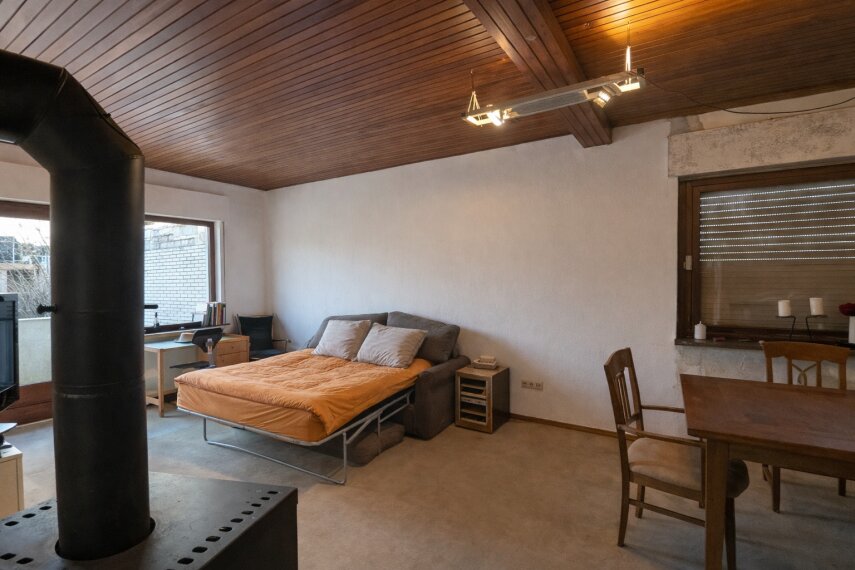Auch das Obergeschoss lässt sich mit etwas mehr Aufwand in eine eigene Wohneinheit umwandeln – die notwendigen Küchenanschlüsse sind im Badezimmer bereits vorgesehen. Diese Flexibilität macht das Objekt ideal für Mehrgenerationenwohnen oder eine teilweise Vermietung.