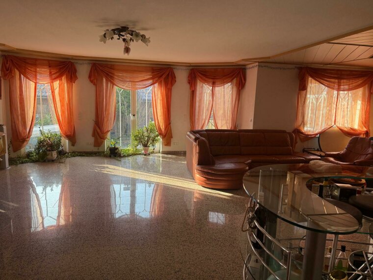 Dieses Haus überzeugt mit einer Gesamtwohnfläche von ca. 356 m² und einer zusätzlichen Nutzfläche von etwa 74 m². Hochwertige Materialien wie Parkett, Granit und Fliesen prägen das stilvolle Ambiente. Beheizt wird das Objekt über eine moderne Gaszentralheizung, ergänzt durch Fußbodenheizung im Saunabereich sowie einen gemütlichen Kaminofen mit etwa 6 kW Leistung.