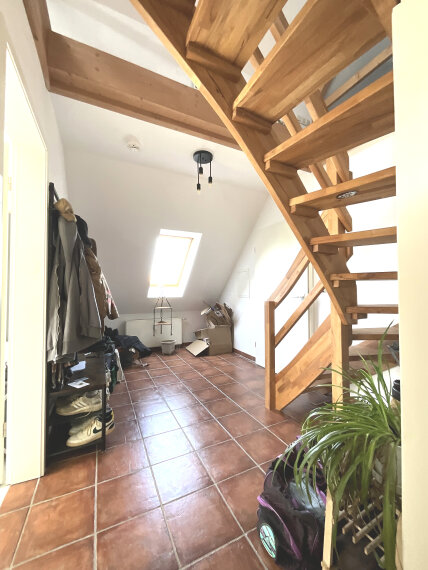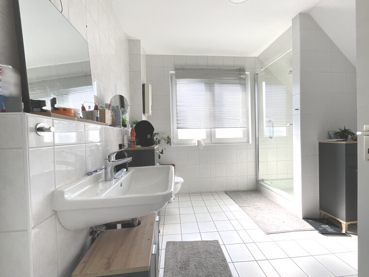 Im 2. Obergeschoss erwartet Sie eine charmante Maisonette-Wohnung mit einer großzügigen Fläche von etwa 90 m². Diese Wohnung überzeugt durch ihre offene Raumaufteilung, die lichtdurchflutete Räume schafft und ein modernes Wohngefühl vermittelt. Ergänzt wird das Angebot durch eine weitere attraktive Wohnung im Dachgeschoss, die auf ca. 75 m² Platz für zwei Zimmer, eine offene Küche, ein zeitgemäßes Badezimmer mit Dusche sowie einen praktischen Abstellraum bietet.