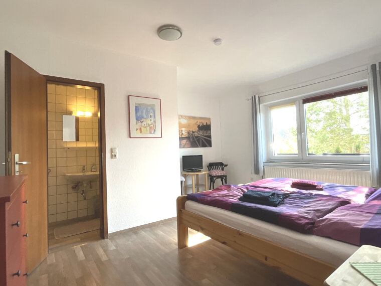 Dieses großzügige Anwesen präsentiert sich als hervorragend ausgestatteter Veranstaltungsort, der alle Voraussetzungen für einen professionellen Seminar- oder Tagungsbetrieb erfüllt. Insgesamt stehen 23 stilvoll gestaltete Gästezimmer zur Verfügung – jedes davon mit eigenem Duschbad inklusive Waschbecken und WC. Die Zimmer bestechen durch ihre helle, einladende Atmosphäre und sind mit komfortabler Möblierung wie Betten, Schränken, Schreibtischen und Sitzmöglichkeiten ausgestattet. Teilweise gehören auch Fernseher zur Ausstattung. Der Ausblick ins Grüne sorgt in vielen Räumen für ein zusätzliches Wohlfühlambiente.