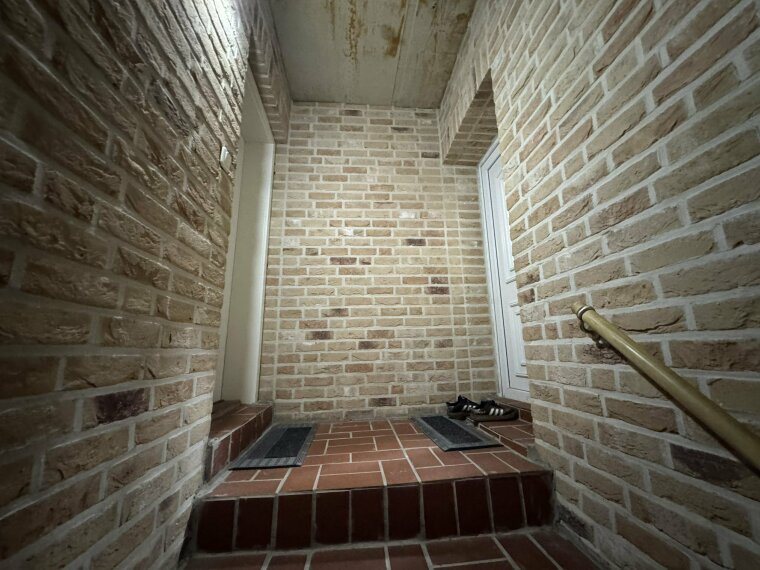 Das Haus ist durch ein gemeinsames Eingangstor zugänglich, wobei jede der drei Wohnungen über einen eigenen, privaten Eingang verfügt.