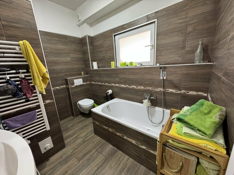 • Badezimmer mit Wanne und Fußbodenheizung