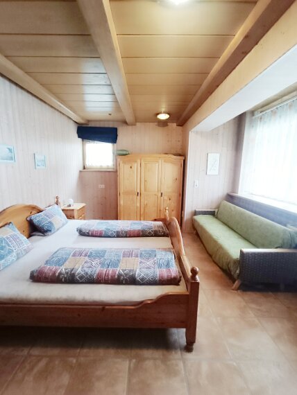 Optional erwerbbar: Auf dem Grundstück befindet sich ein hochwertiges Holzhaus (Baujahr 2020) mit einer Grundfläche von ca. 40 m², das auf einer massiv gebauten Doppelgarage errichtet wurde – ideal nutzbar als zusätzliches Ferienhaus, Atelier oder Büro.