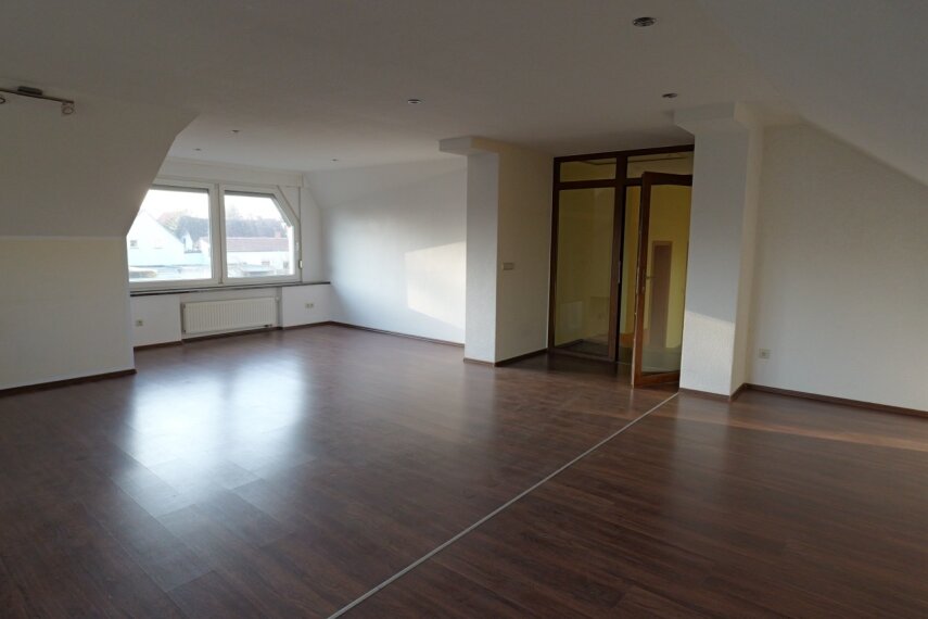 Das großzügige Wohnzimmer, ausgestattet mit elektrischen Rollläden, vermittelt durch teilweise verkleidete Wände und Decken eine behagliche Atmosphäre. Integrierte Deckenstrahler sorgen für eine stimmungsvolle Beleuchtung und setzen den Raum stilvoll in Szene. Teilweise wurden bereits moderne Kunststofffenster installiert, die zur Energieeffizienz des Hauses beitragen und den Wohnkomfort erhöhen.
