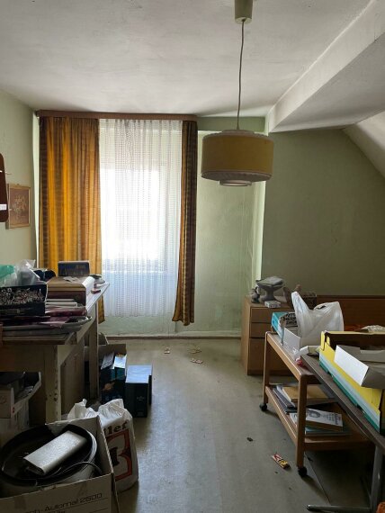 Obwohl das Wohnhaus derzeit in einem sanierungsbedürftigen Zustand ist, bietet die solide Bausubstanz die Möglichkeit, den historischen Charme gekonnt mit modernem Wohnkomfort zu vereinen. Hier können Sie Ihre individuellen Vorstellungen verwirklichen und ein einzigartiges Zuhause schaffen.