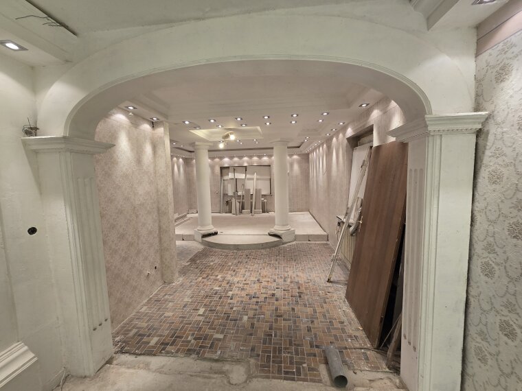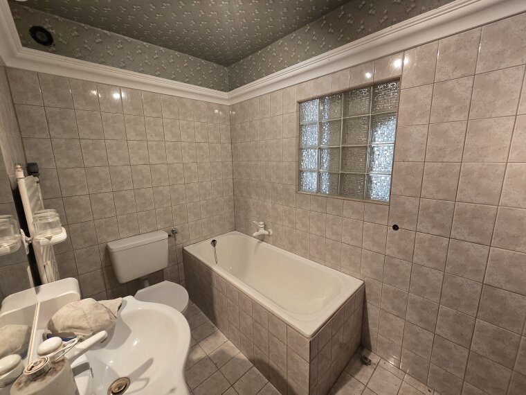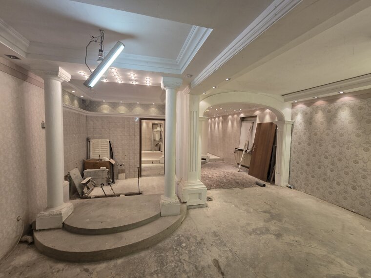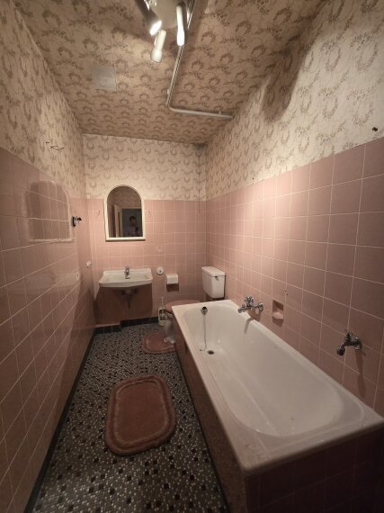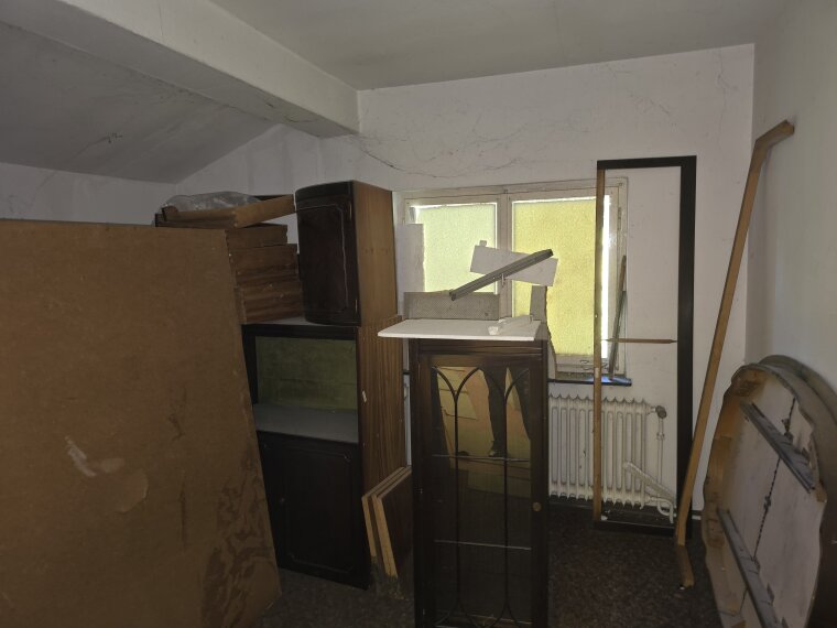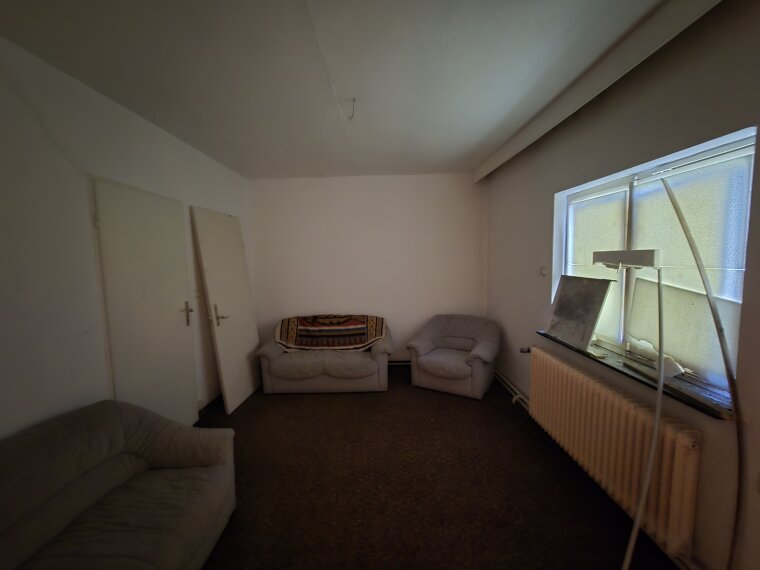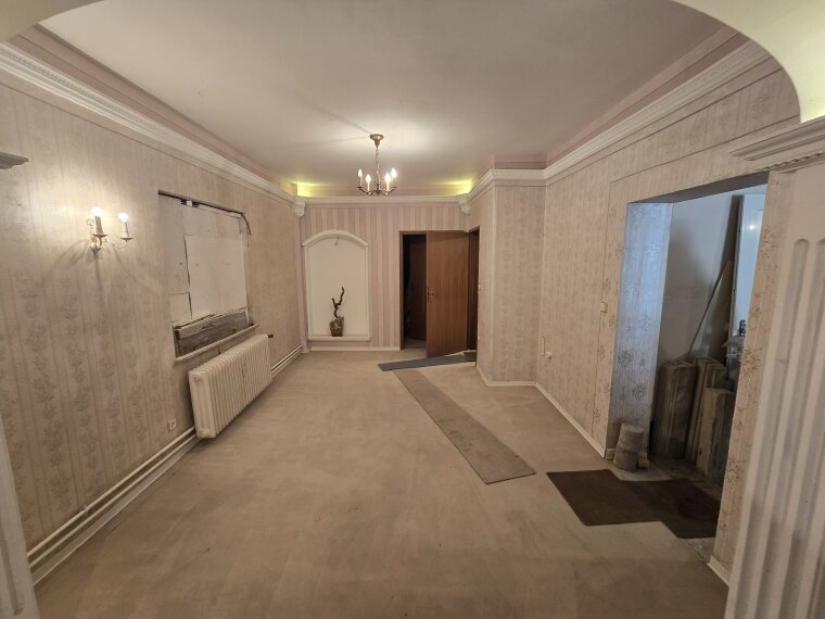 Im vorderen Bereich befindet sich das Haupthaus, dessen Grundstruktur aus mehreren Bauabschnitten hervorgeht – ursprünglich errichtet für einen Schützenverein, wurde es später sukzessive zu einem 3- bis 4-Familienhaus erweitert. Die Grundsubstanz ist solide, allerdings befindet sich das Innere aktuell in einem teilsanierten Zustand, was neuen Eigentümern die Freiheit bietet, nach eigenen Vorstellungen zu gestalten.