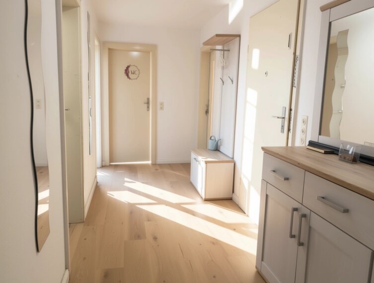 Der zusätzlich zur Verfügung stehende Raum mit eigenem Zugang vom Treppenhaus eignet sich hervorragend als Messe- oder Monteurzimmer. Hier können Gäste ungestört untergebracht werden, ohne den Wohnbereich der anderen Mieter zu stören.