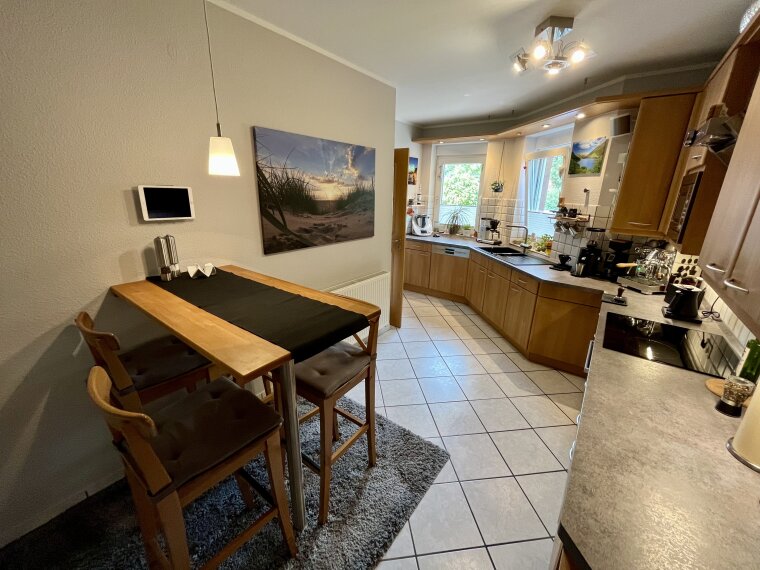 - Abgeschlossene Küche mit hochwertiger Einbauküche und Thekenlösung