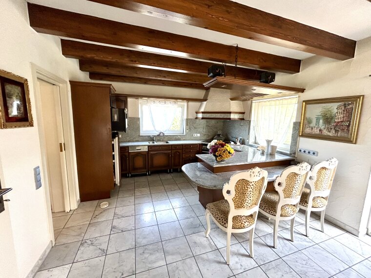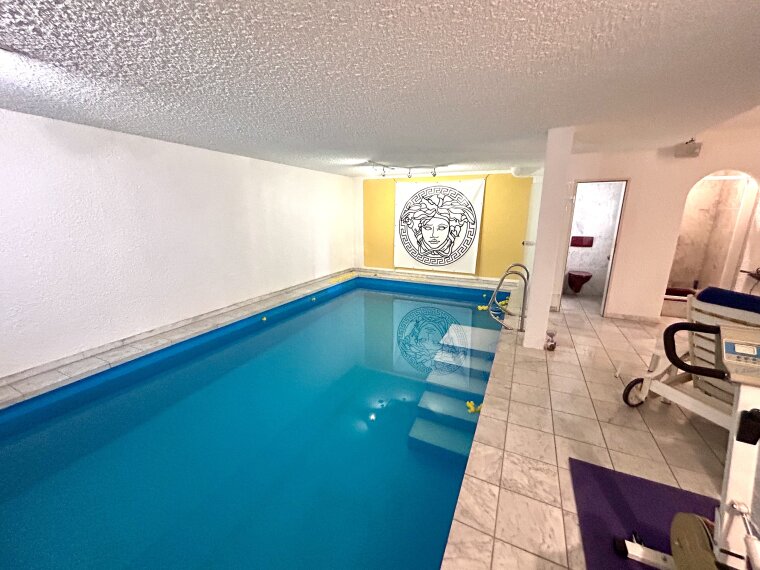 Zu den Highlights dieser Immobilie zählen der Indoor-Pool, die Sauna, Balkone, Dachloggia, Terrassen, ein gepflegter Garten, der Wintergarten sowie ein Kamin. Die ZEYKO-Einbauküche mit SIEMENS Elektrogeräten, inklusive Kaffeevollautomat, und die hochwertigen Marmorböden unterstreichen den gehobenen Standard. Die große Doppelgarage mit direktem Zugang zum Haus und zwei zusätzliche PKW-Stellplätze bieten zudem praktischen Komfort.