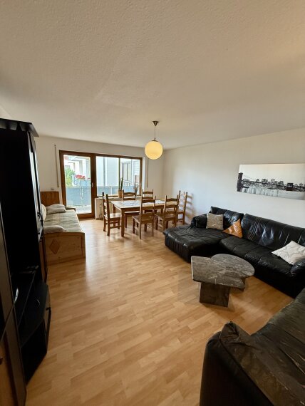 Großzügiges Wohnzimmer mit Zugang zum Balkon