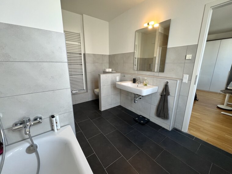 Ein echtes Highlight ist die rund 30 m² große, nach Südosten ausgerichtete Dachterrasse, die zum Sonnen und Entspannen einlädt und den Wohnraum eindrucksvoll erweitert. Das 2017 fertiggestellte Mehrfamilienhaus befindet sich in einem gepflegten Zustand.