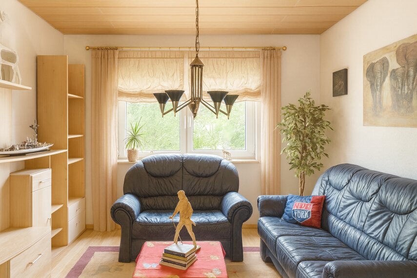 Das Haus ist mit einer neuen Gasheizung aus dem Jahr 2023 ausgestattet und verfügt über doppeltverglaste Fenster. Eine Einbauküche ist ebenfalls vorhanden. Elektrische Rollläden sowie eine Markise auf der Terrasse sorgen für zusätzlichen Komfort. Derzeit ist das Haus noch mit Kartons vollgestellt, wird aber bei Verkauf leer übergeben. Im Exposé sind sowohl Bilder des Originalzustands als auch KI-bearbeitete Bilder enthalten, um mögliche Gestaltungsideen zu zeigen.