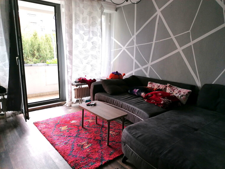Wohnzimmer – lichtdurchflutet mit Zugang zum Balkon