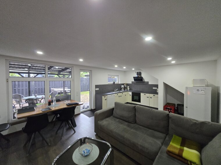 Offene Wohnküche: Der großzügige Wohnbereich mit offener Küche schafft eine einladende Atmosphäre für gesellige Stunden und gemeinsames Kochen.