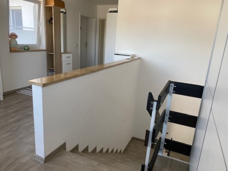Das Erdgeschoss präsentiert sich in modernem Gewand und kombiniert hochwertigen Fliesenboden mit neuem Laminat, das 2022 verlegt wurde. Die optimierte Raumaufteilung ermöglicht vielfältige Nutzungsmöglichkeiten. In allen Bereichen sorgen Heizkörper für wohlige Wärme, während Ihnen insgesamt drei PKW-Stellplätze zur Verfügung stehen.