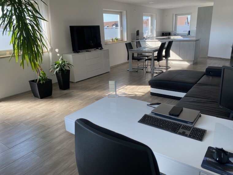 Die Obergeschosswohnung überzeugt durch ihre moderne und durchdachte Ausstattung. Der durchgängige Fliesenboden verleiht den Räumen eine stilvolle Eleganz, während die Fußbodenheizung für ein behagliches Wohnklima sorgt. Die lichtdurchflutete Gestaltung schafft eine einladende Atmosphäre und lässt die Räume lebendig wirken.