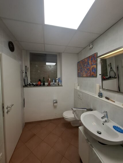 Die Gewerbeeinheit überzeugt durch einen geräumigen Lagerraum sowie ein helles, modern ausgestattetes Büro, das sich in einem hervorragenden Zustand präsentiert. Ein Badezimmer mit Dusche und WC rundet das Raumangebot ab. Darüber hinaus steht Ihnen ein gemeinschaftlich nutzbarer Waschraum zur Verfügung, der zusätzliche Flexibilität ermöglicht. Die Trennung zwischen Lagerraum und Büro erfolgt durch eine Trockenwand, die sich unkompliziert entfernen lässt, falls Sie eine offene Raumgestaltung bevorzugen.