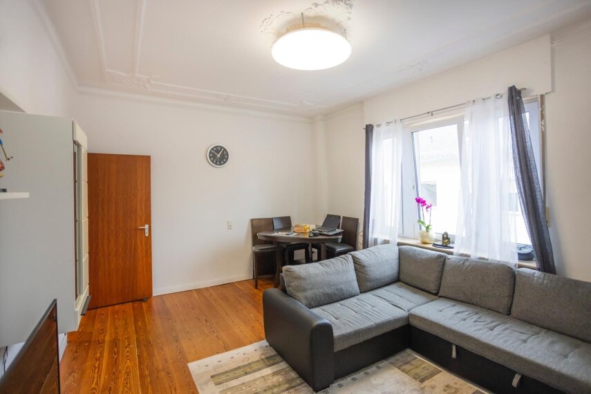 Entdecken Sie diese exquisite, vermietete 4-Zimmer-Eigentumswohnung im 2. Obergeschoss eines liebevoll modernisierten Stadthauses, wo historischer Charme auf modernen Wohnkomfort trifft und eine harmonische Symbiose bildet.