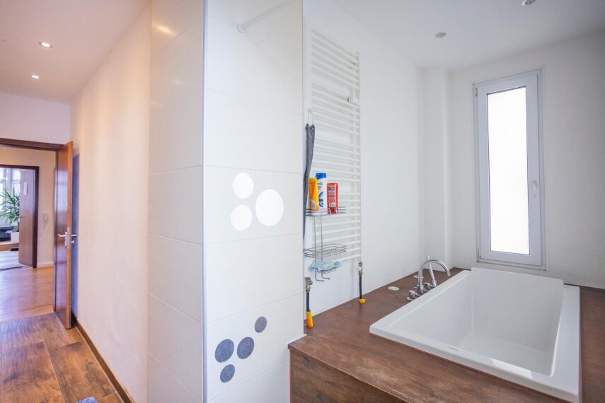 – Außergewöhnliches Tageslichtbad mit Badewanne, Dusche und Fußbodenheizung