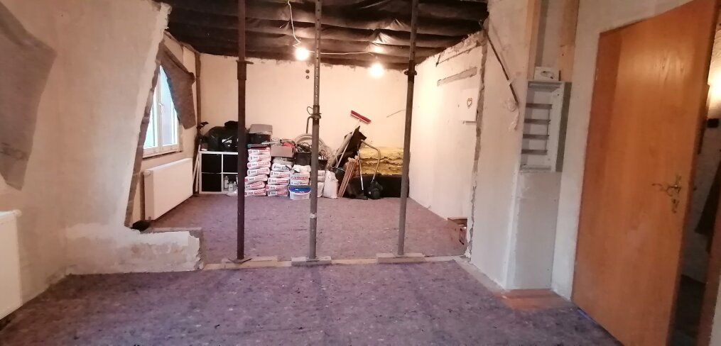 Das Objekt ist sanierungsbedürftig, jedoch bereits teilsaniert und teilweise entkernt. Viele kostenintensive Arbeiten sind schon erledigt: darunter neue Heizungsanlagen, neue Fenster, erneuerte Elektrik im Obergeschoss sowie Dämmmaßnahmen im Dach. Dadurch kann der Ausbau deutlich schneller, planbarer und wirtschaftlicher fortgeführt werden. Umfangreiches Ausbaumaterial (u. a. Gipskarton, OSB, Dämmung, Dachlatten, Gipse, Kleber) ist bereits vor Ort und im Kaufpreis enthalten – ein echter Vorteil für Familien, die Schritt für Schritt ihren Wohntraum realisieren möchten.