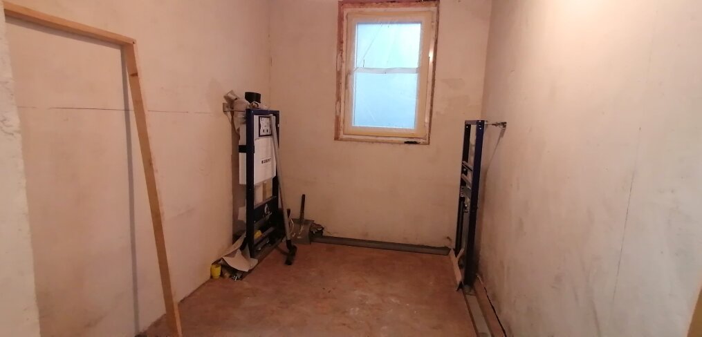 Bad mit Geberit-Vorwand vorbereitet, Ausbau offen