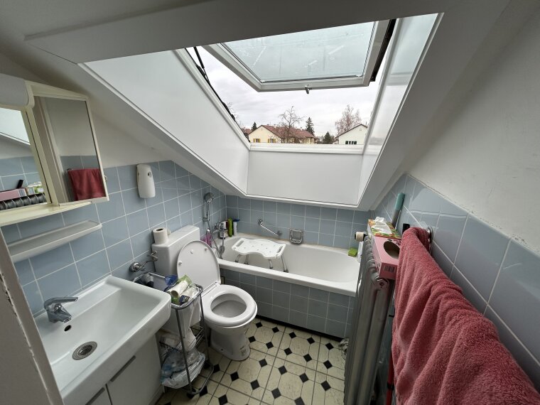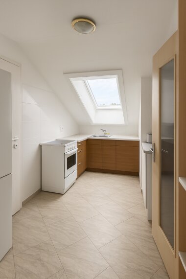Das Tageslichtbad ist mit einer Badewanne ausgestattet und bietet einen angenehmen Komfort. Die vorhandene Einbauküche ist im Kaufpreis enthalten und rundet das Wohnangebot praktisch ab.