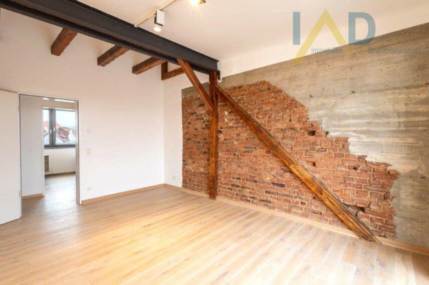 Das Herzstück der Wohnung ist der großzügige Wohn-, Ess- und Kochbereich, der auf beeindruckenden 56 Quadratmetern ein luftiges Loft-Gefühl entfaltet und zum Verweilen einlädt. Der 13 Quadratmeter große Balkon bietet nicht nur Raum für entspannte Stunden, sondern auch einen malerischen Ausblick über die Dächer von Eschwege. Offene Balkenkonstruktionen und Sichtmauerwerk aus Ziegeln verleihen dieser Wohnung einen charmanten, rustikalen Charakter.