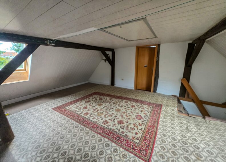 Der Dachboden ist derzeit nicht ausgebaut, bietet jedoch vielversprechenden Raum für kreative Ideen und individuelle Gestaltungsmöglichkeiten. Hier können Sie zusätzlichen Wohnraum schaffen oder es als praktischen Lagerraum nutzen.