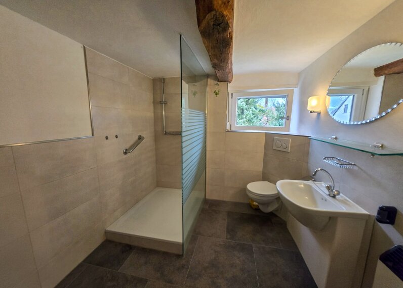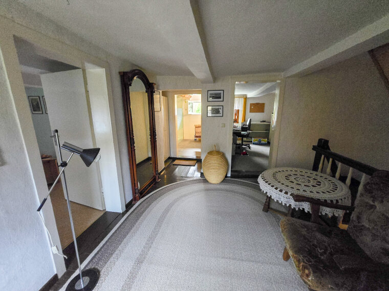 Im Obergeschoss erwartet Sie ein geräumiges Schlafzimmer mit Ankleideraum, das eine ruhige Rückzugsmöglichkeit bietet. Zudem stehen Ihnen drei Individualräume zur Verfügung, von denen einer als Durchgangszimmer genutzt wird. Ein neues Badezimmer im Obergeschoss sorgt für modernen Komfort und ein angenehmes Ambiente.