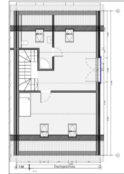 • Vier Dachflächenfenster WR-01 (660×1400 mm), die viel Licht einbringen