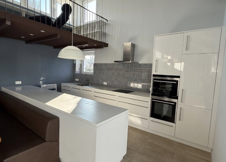 Das separate 1-Zimmer-Gästeappartement ist barrierefrei konzipiert und rollstuhlgerecht zugänglich. Es verfügt über eine ebenerdige Dusche, eine funktionale Küchenzeile, Einbauschränke sowie eine eigene Terrasse zum Wasser, die vom Haupthaus aus nicht einsehbar ist – ideal für Gäste, Au-pair oder als Einliegerwohnung.