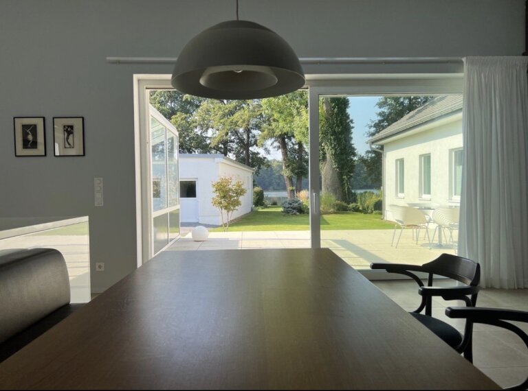 Die Villa befindet sich in absoluter Ruhe­lage direkt am See, eingebettet in einen nahezu uneinsehbaren Garten, der gemeinsam mit der großzügigen Seeterrasse ideale Voraussetzungen für Entspannung und Rückzug bietet. Gleichzeitig überzeugt die Lage durch ihre hervorragende Anbindung. Die Innenstadt von Königs Wusterhausen mit vielfältigen Restaurants, Bars, Kino, einem bekannten Wochenmarkt sowie Kitas, allen Schulformen, Ärzten und Krankenhaus ist in weniger als zehn Minuten erreichbar. Das A10 Center mit zahlreichen Geschäften und Freizeitangeboten liegt nur etwa 15 Minuten entfernt. Der Flughafen BER Flughafen ist in rund 20 Minuten erreichbar, die Berliner Innenstadt in ca. 30–35 Minuten. Damit verbindet dieses Anwesen auf einzigartige Weise naturnahes, exklusives Wohnen mit urbaner Nähe.