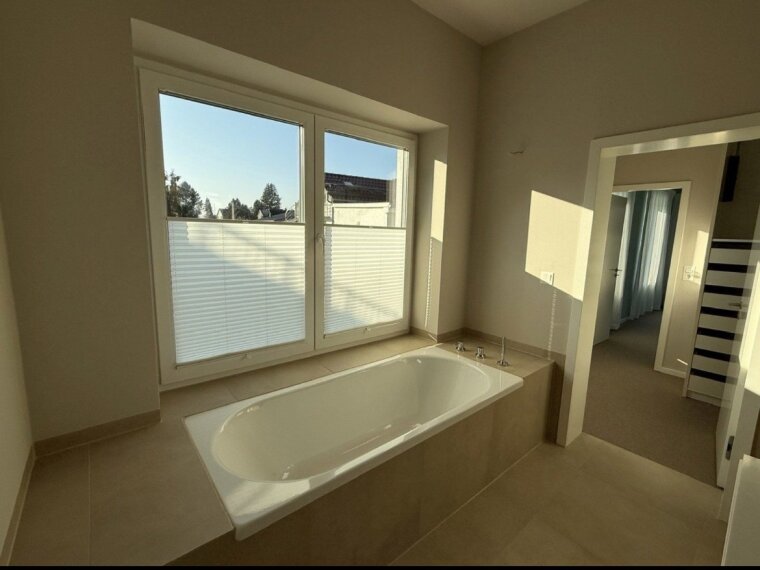 Der Privattrakt bietet maximale Ruhe und Privatsphäre. Das Schlafzimmer ist von außen nicht einsehbar und begeistert mit direktem Wasserblick. Vorgelagert befinden sich ein großzügiges Ankleidezimmer sowie das elegante Masterbad mit Walk-in-Dusche, großer Badewanne, Bidet, WC und maßgefertigtem Waschtisch. Ein weiteres geräumiges Zimmer, das den Privattrakt vom Eingangsbereich aus erschließt, ergänzt diesen Bereich ideal.