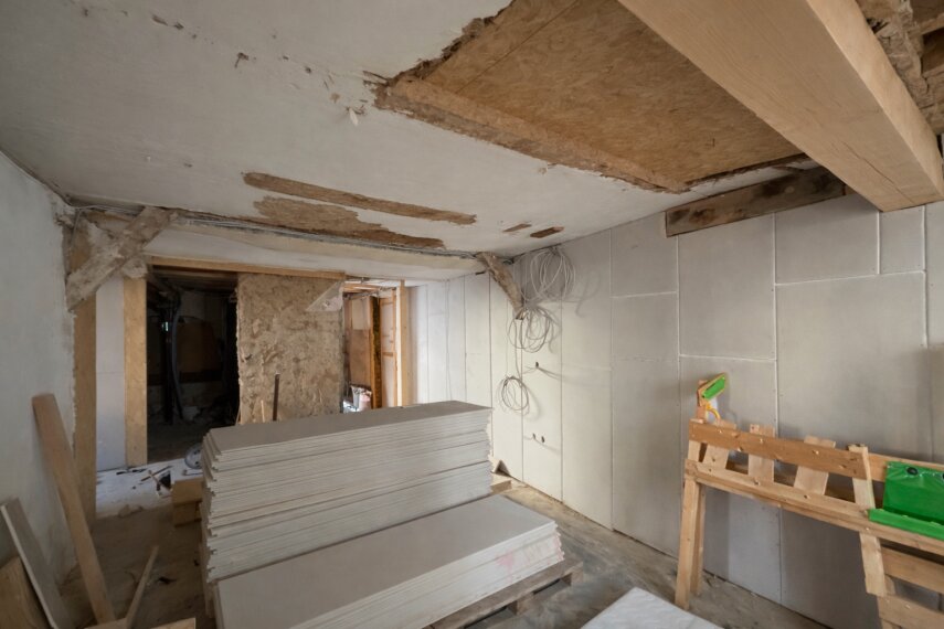 Zwei Wohneinheiten sind vollständig saniert und mittlerweile vermietet, wodurch bereits eine solide Einnahmebasis vorhanden ist. Zwei weitere Wohneinheiten mit jeweils ca. 90 m² Wohnfläche sind weitgehend fertiggestellt. Hier wurden die Badezimmer bereits für die Installation der Keramik vorbereitet, die Wohnräume sind größtenteils ausgebaut, sodass lediglich abschließende Endarbeiten durchzuführen sind. Zwei weitere Einheiten im Erdgeschoss befinden sich noch im Ausbauzustand. Umfangreiche Vorarbeiten wurden bereits geleistet, zudem ist ein großer Teil des benötigten Materials vorhanden und wird beim Verkauf mit übergeben.
