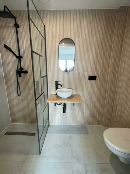 Auch im Innenbereich wurde das Objekt umfassend modernisiert. Die Badezimmer wurden mit hochwertigen Materialien und Design Sanitärausstattung ausgestattet und entsprechen einem gehobenen Standard.
