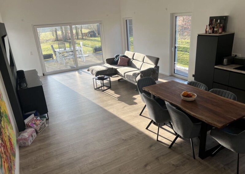 - Helles Wohnzimmer: Der Kaminofen sorgt für eine gemütliche Atmosphäre an kalten Tagen.