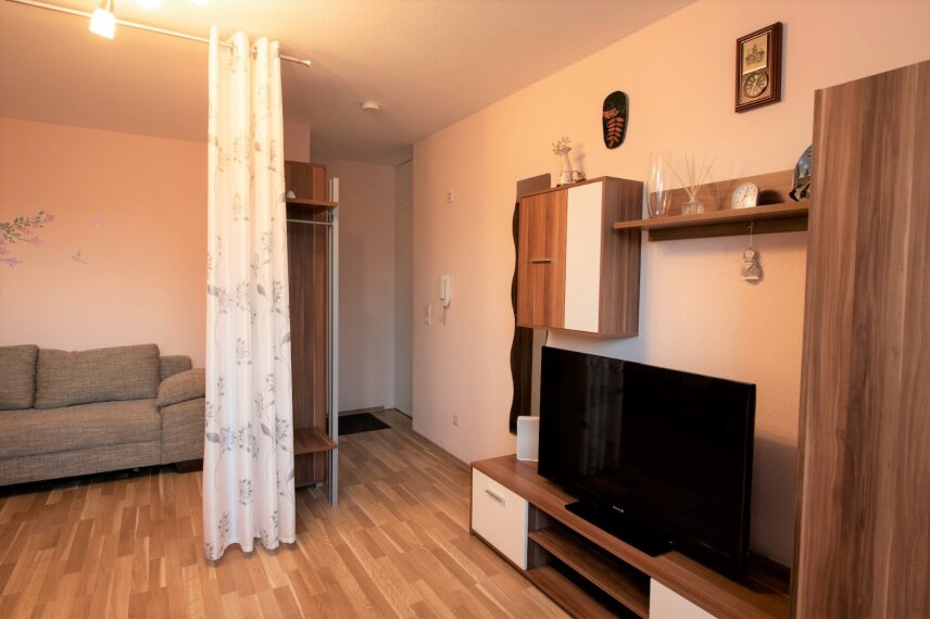 Die Wohnung verfügt über einen hellen Wohn- und Essbereich sowie einen separaten kleinen Schlafbereich und eignet sich ideal für Singles, Pendler oder als Kapitalanlage.