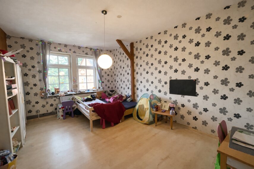 Das Haus verfügt über eine Gesamtwohnfläche von ca. 210 m² und ist in zwei Wohneinheiten aufgeteilt. Die Hauptwohneinheit im Obergeschoss bietet ca. 150 m² Wohnfläche und überzeugt durch großzügige Räume und eine angenehme Wohnatmosphäre. Im Erdgeschoss befindet sich zusätzlich eine Einliegerwohnung mit ca. 60 m² Wohnfläche, die sich ideal zur Vermietung eignet. Eine monatliche Kaltmiete von etwa 500 bis 650 € erscheint hier realistisch und bietet zusätzliches Einnahmepotenzial.