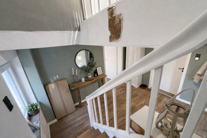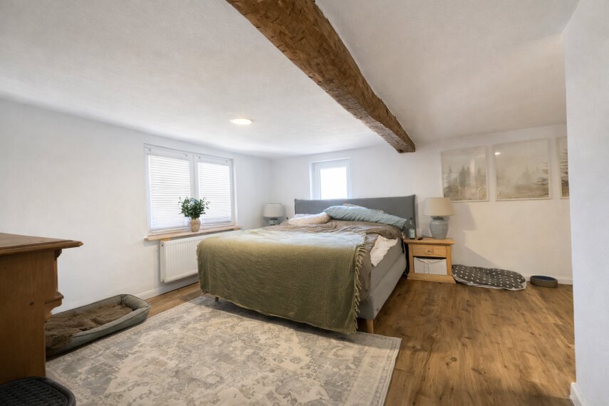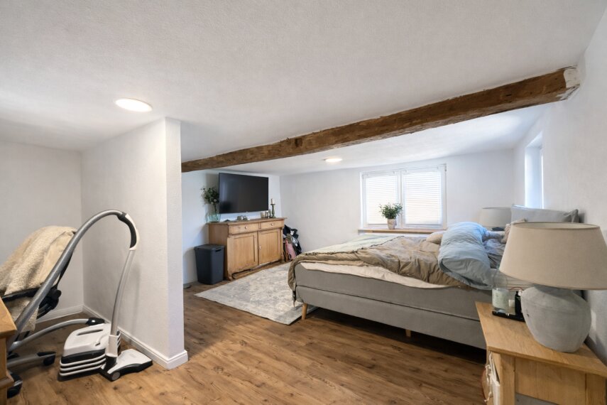 Der Dachboden bietet weiteres Ausbaupotenzial und kann zusätzlichen Wohnraum schaffen oder als Stauraum genutzt werden.