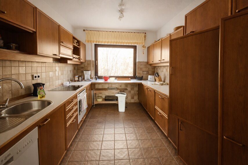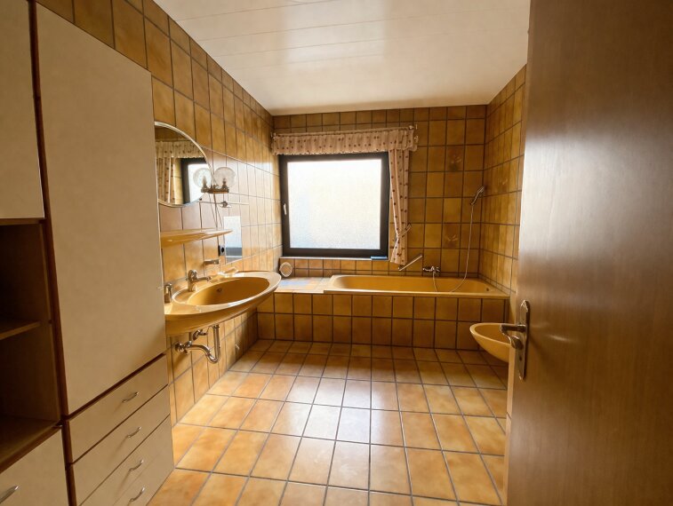 Die Immobilie befindet sich insgesamt in einem renovierungsbedürftigen Zustand. Aufgrund des Baujahres präsentieren sich Bäder und Küchen überwiegend im Stil der 1980er Jahre. Auch die vorhandene Heiztechnik entspricht nicht mehr dem heutigen Standard und muss erneuert werden. Derzeit besteht ein Mix aus Öl- und Luftheizung.