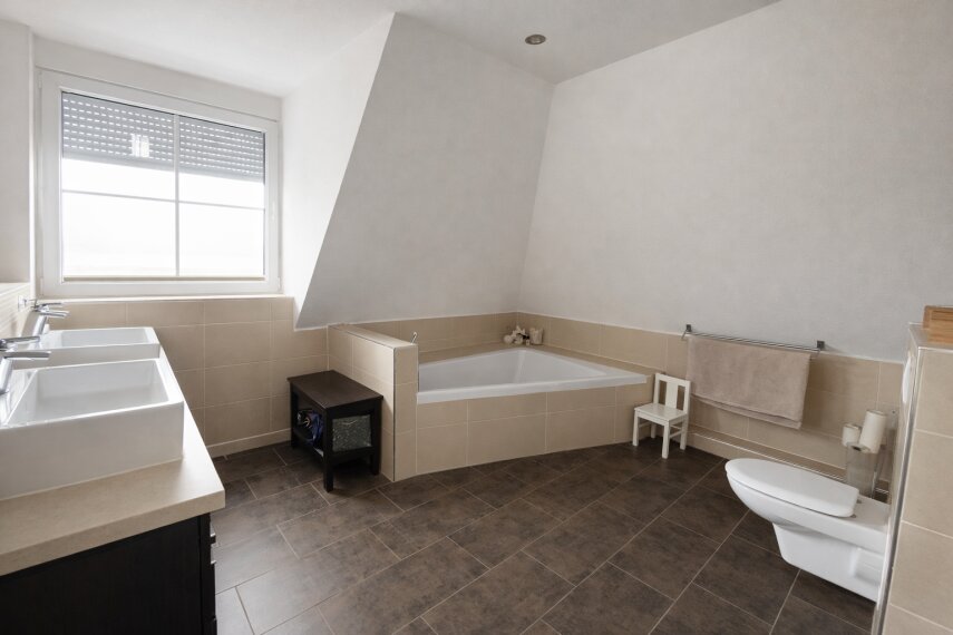 Großes Badezimmer mit Badewanne und Dusche